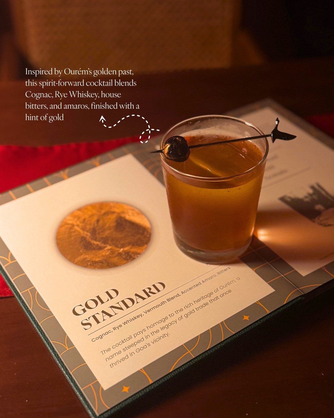 The ground floor hums alive with lively lunches and boisterous dinners, where strangers turn to friends over plates of something exquisite. Upstairs, the vibe shifts completely, a nostalgic lounge bar with balcaos built for lingering conversations, softly glowing under wicker lamps that sway ever so slightly. But the real magic? A discreet vault door, one you might mistake as mundane. A hidden stairway behind, leads to a speakeasy, bathed in burnt gold, lit with chandeliers. Even the sunlight plays its part, streaming theatrically through a skylight, bouncing off a mirror to turn the place into a golden reverie. Ah, and the cocktails? Let’s just say Goa’s gold isn’t limited to its sand. And that’s just the beginning.