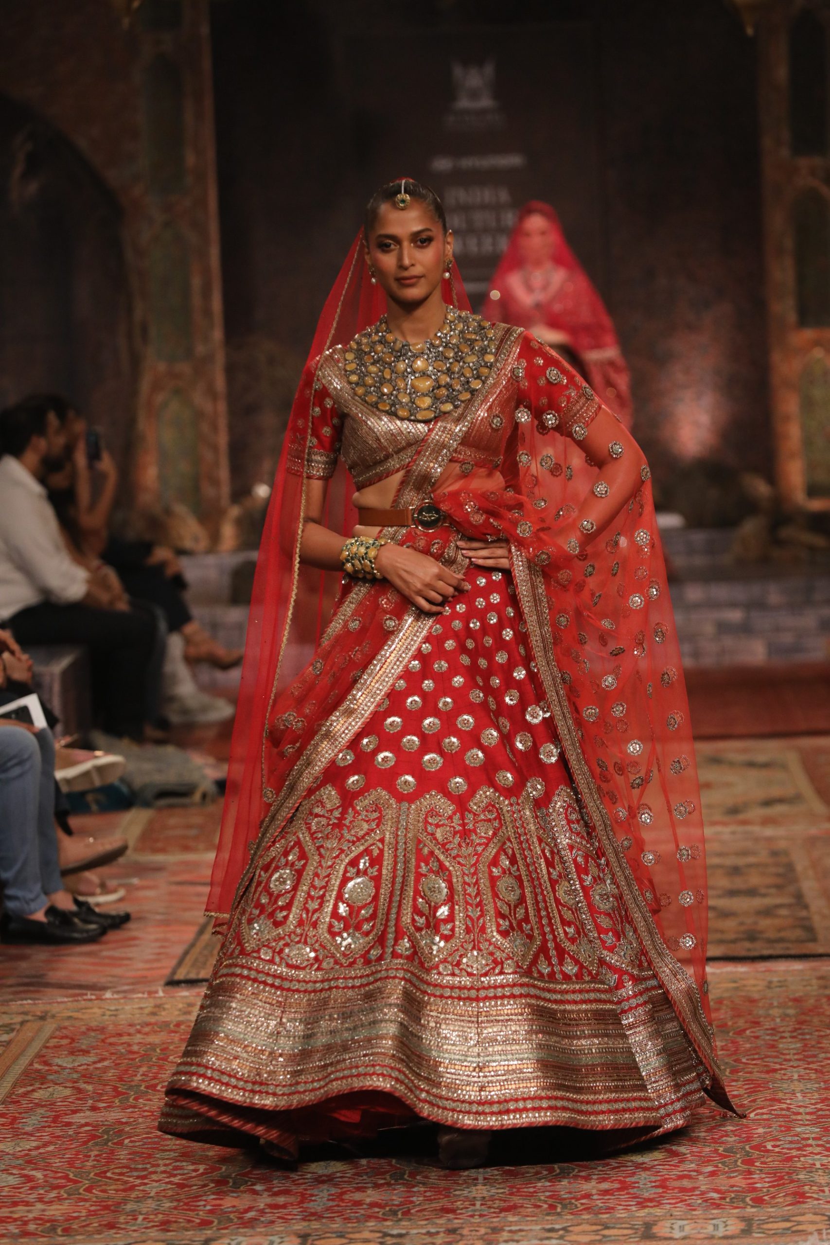 On Day 2 of ICW, Isha Jajodia’s ‘Art of Eternity’, a symphony of romance and refinement captured the limelight. Inspired by the enchanting allure of Paris and the delicate beauty of nature, this collection is a masterpiece of design. With a harmonious blend of French architecture and Indian craftsmanship, Jajodia redefined bridal wear. Think intricate lace, bold silhouettes, and the timeless elegance of chikankari, all coming together in a breathtaking ensemble. From classic pastels to the signature Rose Room Scarlet, the color palette is a feast for the eyes. ‘Art of Eternity’ encapsulates the essence of the Rose Room woman – confident, chic, and eternally stylish.