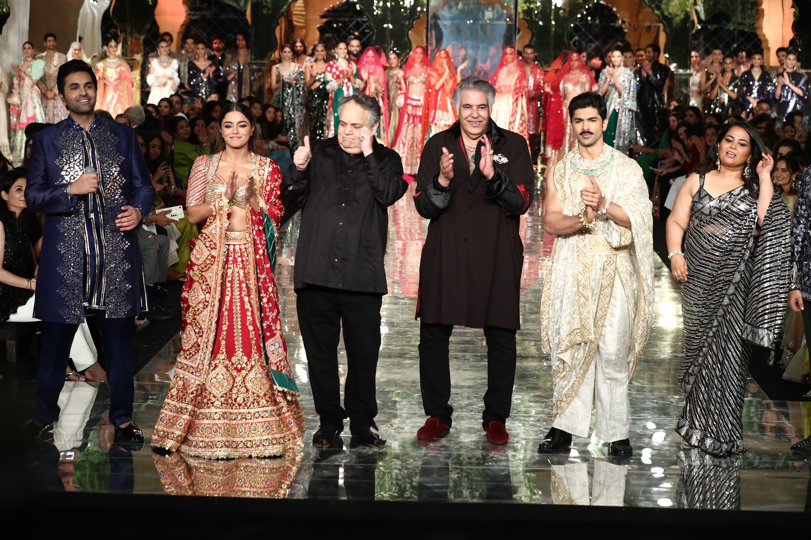 JJ Valaya, the maestro of maximalism, returned to India Couture Week with a collection that was nothing short of spectacular. Drawing inspiration from the artistic heritage of Isfahan, Istanbul, and Delhi, ‘MURAQQA’ was a breathtaking symphony of colors, textures, and intricate craftsmanship. Think galactic embroidery, structured drapes, and a riot of Indian artistry, all woven together to create a modern-day masterpiece. Valaya’s ability to blend the past with the present is unparalleled, resulting in a collection that is both timeless and contemporary. With ‘MURAQQA’, he has once again cemented his position as a leading light of Indian bridal fashion, captivating audiences with his visionary designs.