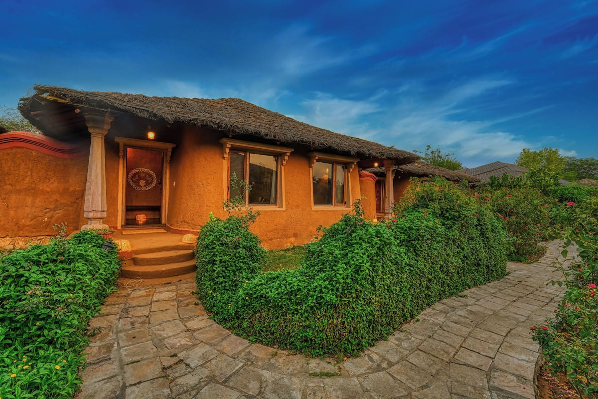 Tucked quietly on the edge of this wilderness lies The Earth at Ranthambore, a property that doesn’t just co-exist with nature—it thrives in conscious harmony with it. While luxury in the jungle often means opulence with a view, The Earth takes a refreshing detour. Built on the principles of sustainability, community, and minimal impact, this boutique hideaway leaves you with a philosophy. Here, your morning alarm might just be the call of a peacock or the rustle of the wind through native trees. Your suite doesn’t just open to the wild, it blends into it with terracotta-hued walls, natural materials, and age-old design wisdom from the local region.