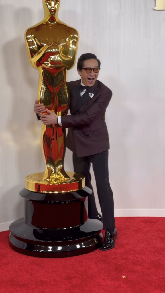 Ke Huy Quan looked dashing in a Giorgio Armani suit and a special natural diamond brooch from Cartier on his lapel.