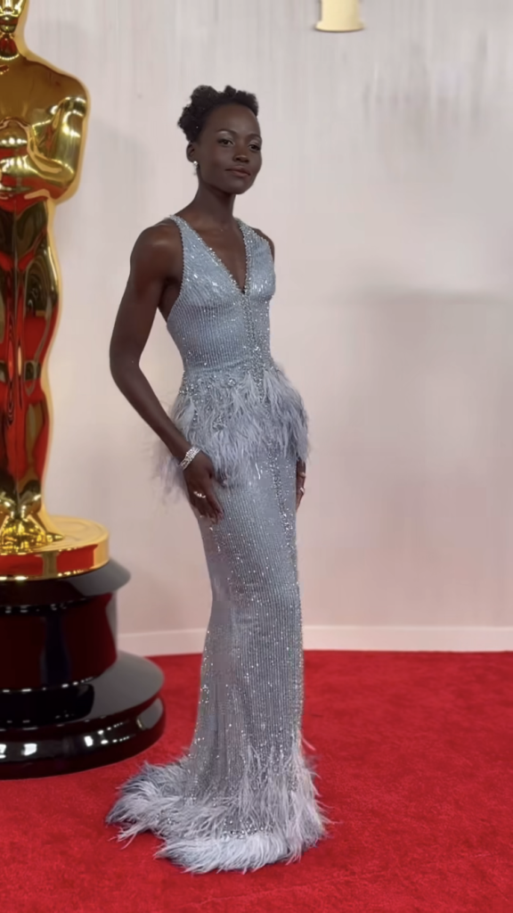 Lupita looked whimsical in an Armani Privé gown, and dripping in natural diamonds from De Beers–her earrings weighing over 26 carats.