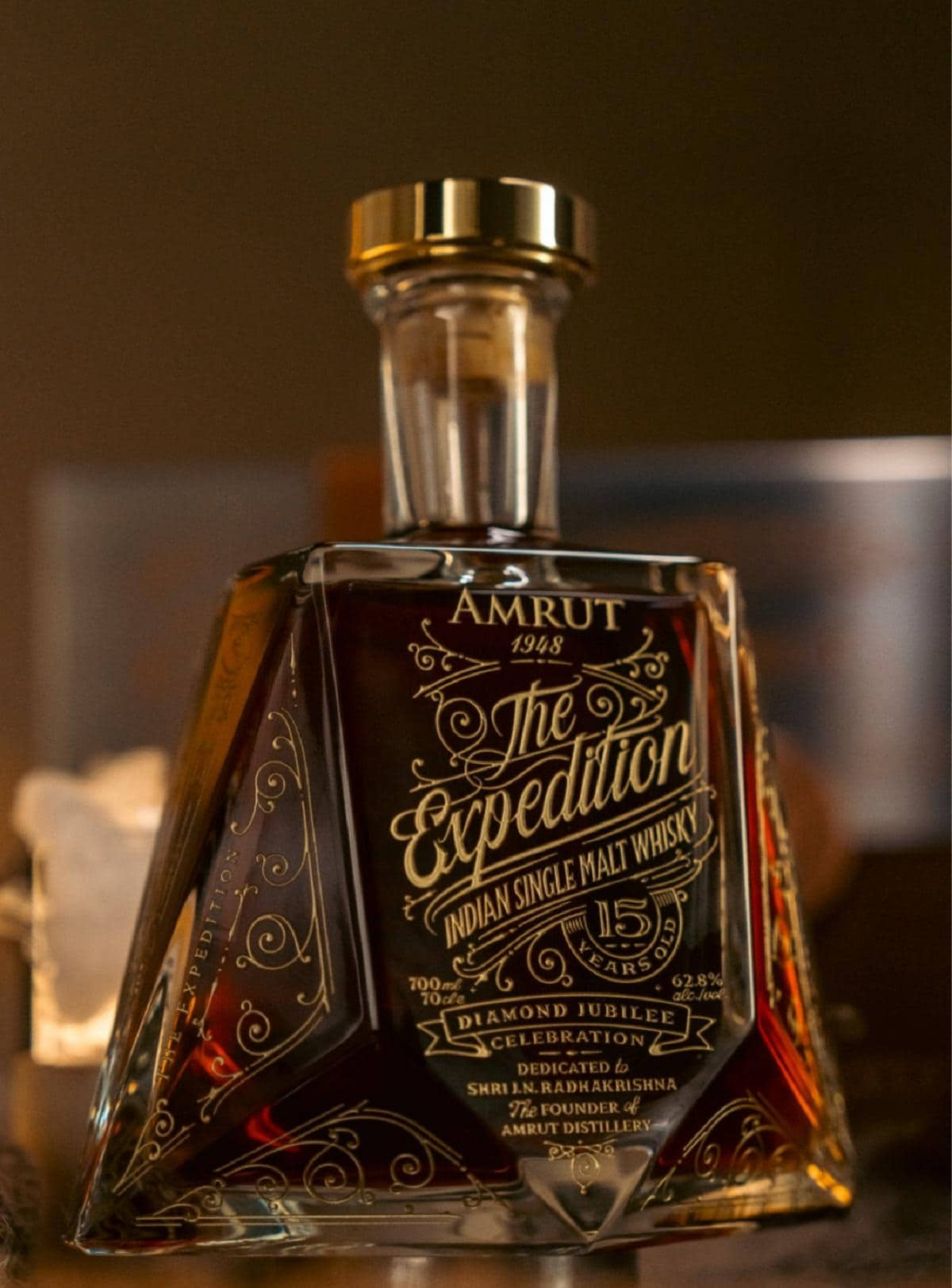 Marking 75 years of mastery, Amrut has made history with India’s oldest and most expensive single malt. Aged for 15 years (eight in sherry casks and seven in ex-bourbon) this rare release is a symphony of rich flavors. The deep cola-hued whisky greets you with notes of cane molasses and sherried truffle, unfolding into layers of chocolate, cracked black pepper, dried fruits, vanilla, and marmalade. Hints of sherbet, sandalwood, and oak add depth, while a lingering touch of bitter cocoa rounds off the experience. With only nine bottles available in India, this collector’s gem is as exclusive as it gets.