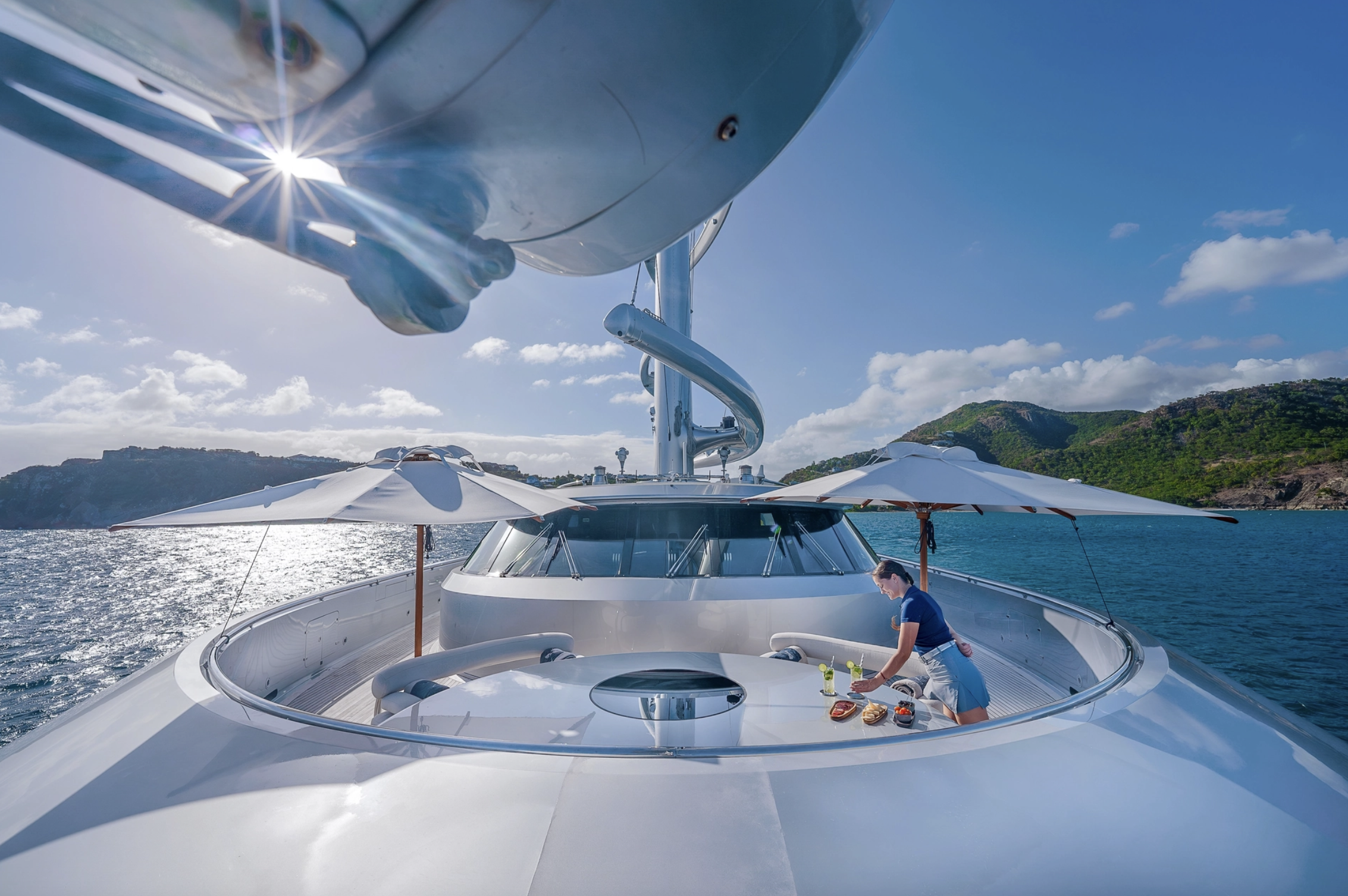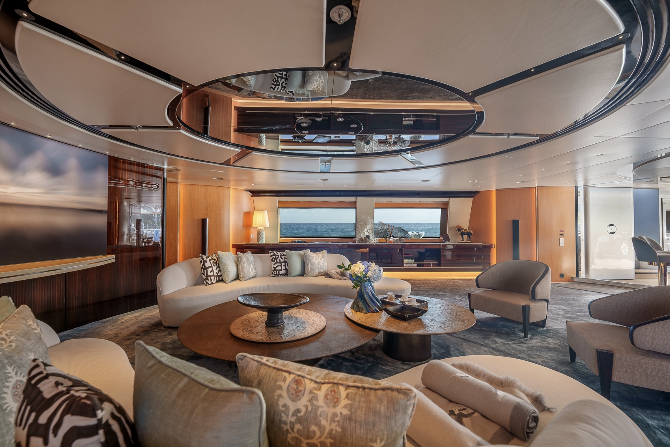 Accommodating 12 guests, the yacht boasts a full-beam master suite, four double cabins with en suite bathrooms, and a private VIP deck with terrace access. Three decks of communal space: including a dramatic atrium with skylight and sweeping staircase, invite guests to unwind, socialise, or simply marvel at the horizon in complete comfort.