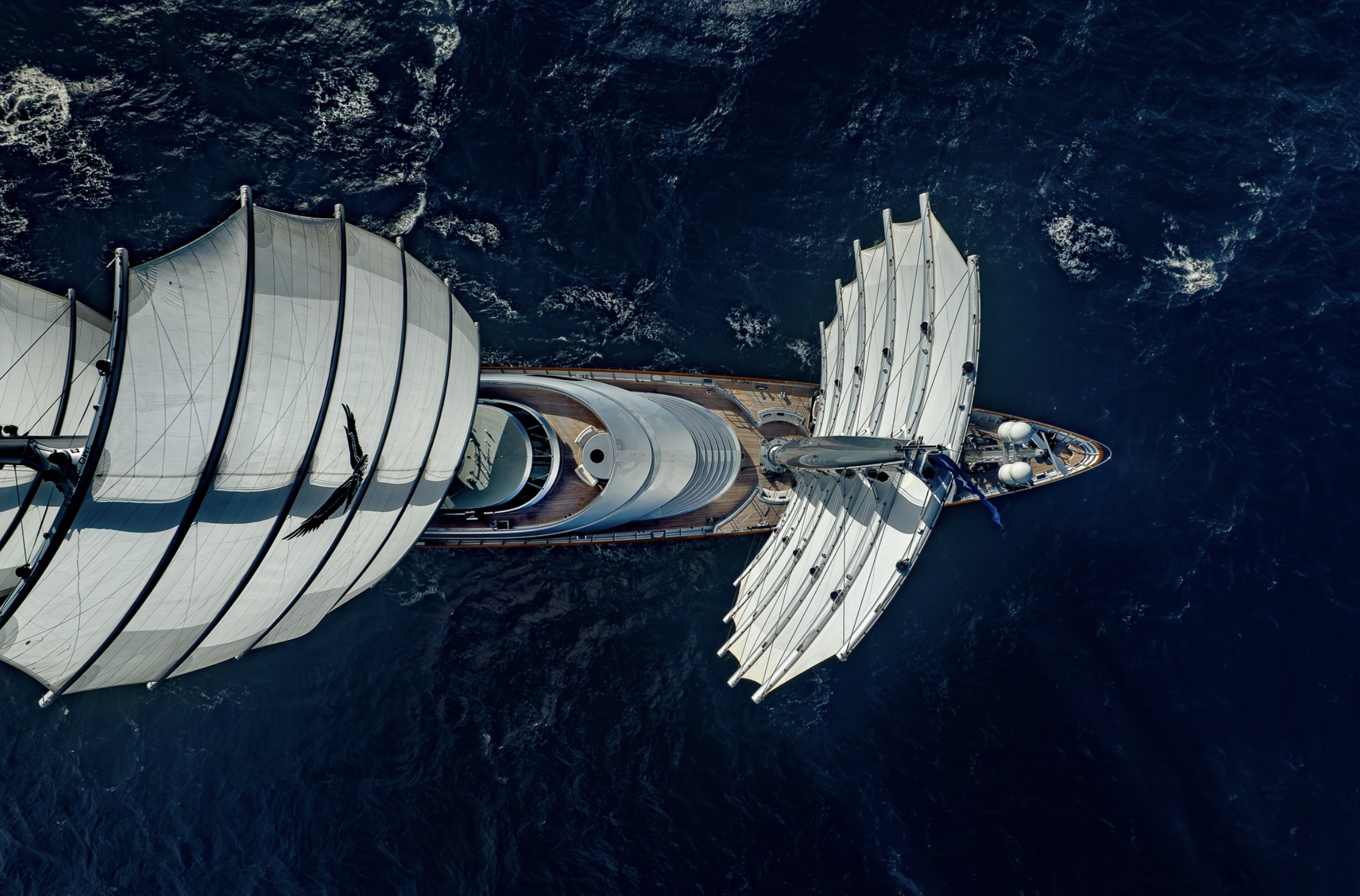 Commanding attention wherever she sails, the Maltese Falcon is a masterpiece of innovation and design. Her signature DynaRig system features three rotating carbon-fiber masts capable of unfurling over 25,830 square feet of sail in just six minutes. Every voyage becomes a spectacle, a blend of precision engineering, visionary design, and high-seas theatre.
