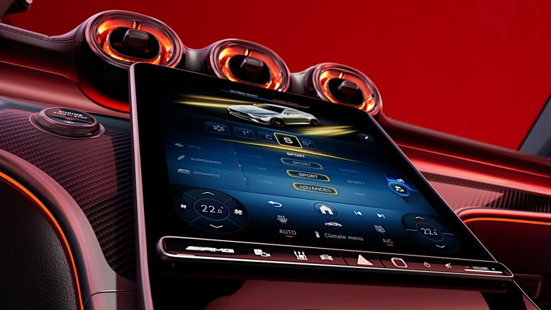 Once you sit inside the AMG CLE 53 Coupé, you’ll immediately notice the luxurious and modern technology it offers. The car features a 12.3-inch digital driver display and an 11.9-inch central display. The interior is illuminated with ambient lighting, and the seats are both comfortable and supportive. You can even opt for Nappa leather seats and customize the driver’s display to your liking, with the AMG Performance steering wheel adding an additional touch of luxury.