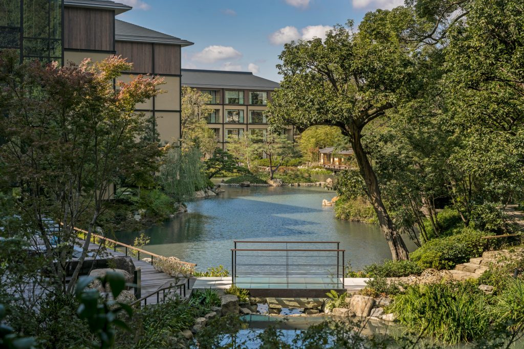 Art and design is a composite part of the elite structure, which was a former Samurai castle, with its original Zen-style garden and koi pond a perfect picture of harmony. While the estate landscape retains some of its original elements, the former castle has been completely modernised to cater to international and domestic travellers. With its Hermes rickshaw charmingly placed at the entrance, its geometric open roof pavilion in front of the porch, and the bamboo avenue which welcomes guests as they drive in, it is quintessential Kyoto, and a great place to get a sense of the ancient city kingdom.