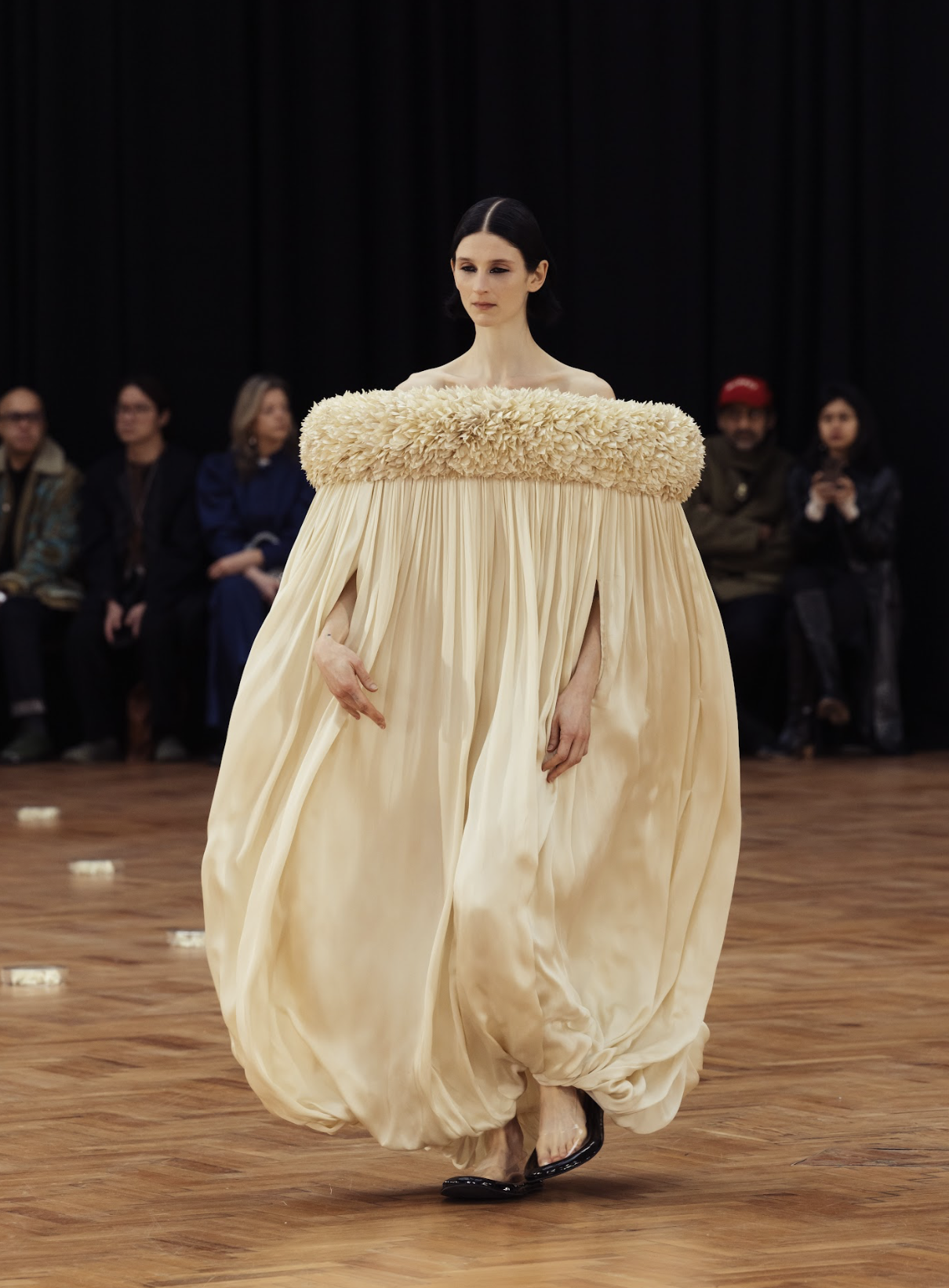 Indian textile house Raw Mango debuted on the international stage at London Fashion Week with its Fall Winter 2026 collection It’s Not About The Flower. Presented by De Beers Group with Forevermark Diamond Jewellery, the showcase was a meditation on plurality, craft and cultural nuance. Founder Sanjay Garg reframed the garland as metaphor, shifting attention from the singular bloom to the collective arrangement. The collection challenged persistent stereotypes around Indian fashion, favouring textile depth and structural restraint over ornamental excess. In doing so, Raw Mango articulated a design language that transcends geography while remaining rooted in indigenous craft histories.