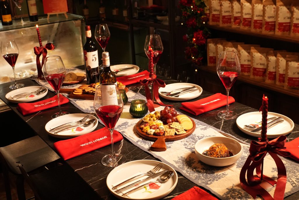 Within the same four walls, the Wine and Cheese room presents a relaxed and equally indulgent experience, where guests can book curated tasting sessions and programmes. Through these sessions they can explore a range of both international and Indian labels paired with a selection of regional and vegan cheeses crafted by local home cooks. A recent pairing I tried featured a remarkable glass of the German St. Urbans-Hof Riesling, perfectly complemented by a Mexican Peri Peri cheese.