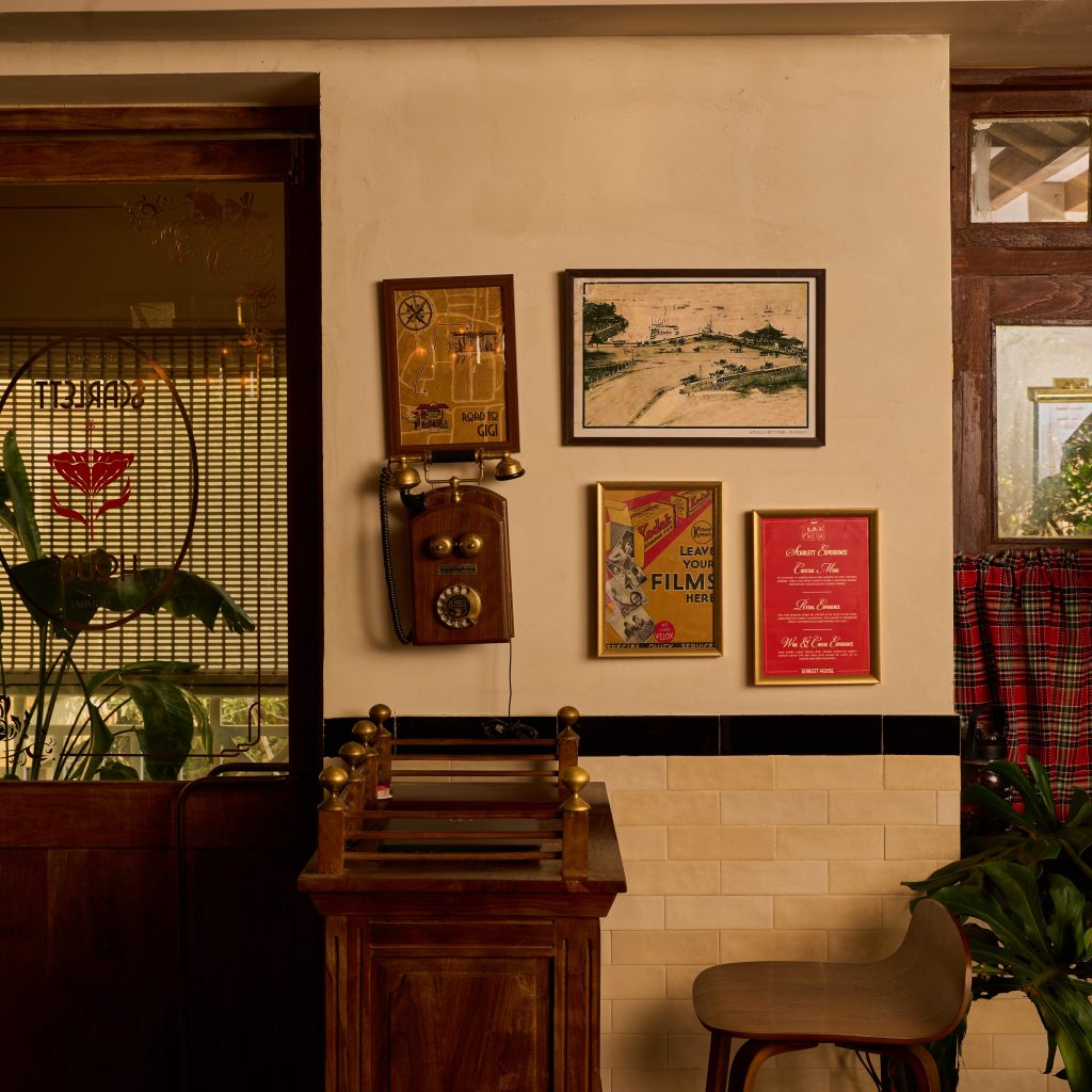 Scarlett House respects and retains the bones of its original structure, layering in warmth and rusticity across two floors. The entryway opens into a cosy dining area with whitewashed walls, distressed wood accents, and vintage décor. Sunlit reading corners are thoughtfully tucked into the space making for a perfect leisurely afternoon haunt.
