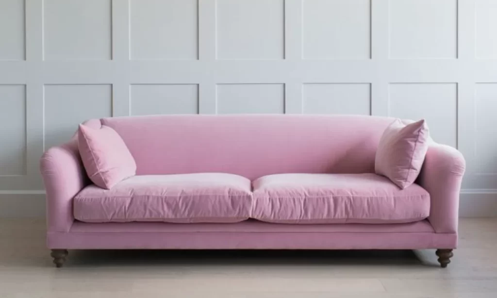 This handmade rose velvet couch from Lakkadhaara is a comfy pink cloud to sink into after a long day at work. If you’re still thinking about the Barbie movie a year later, this colour is for you.