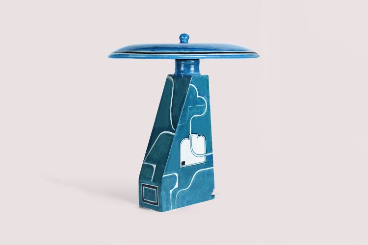 A true masterpiece in blue pottery, the Morpeach Lamp draws from the essence of Jaipur’s artistic heritage with its blue hues and line draws of clouds. Its design mimics the sky, and how fitting for a lamp; when lit, the glowing bulb will appear like the sun breaking through the clouds.