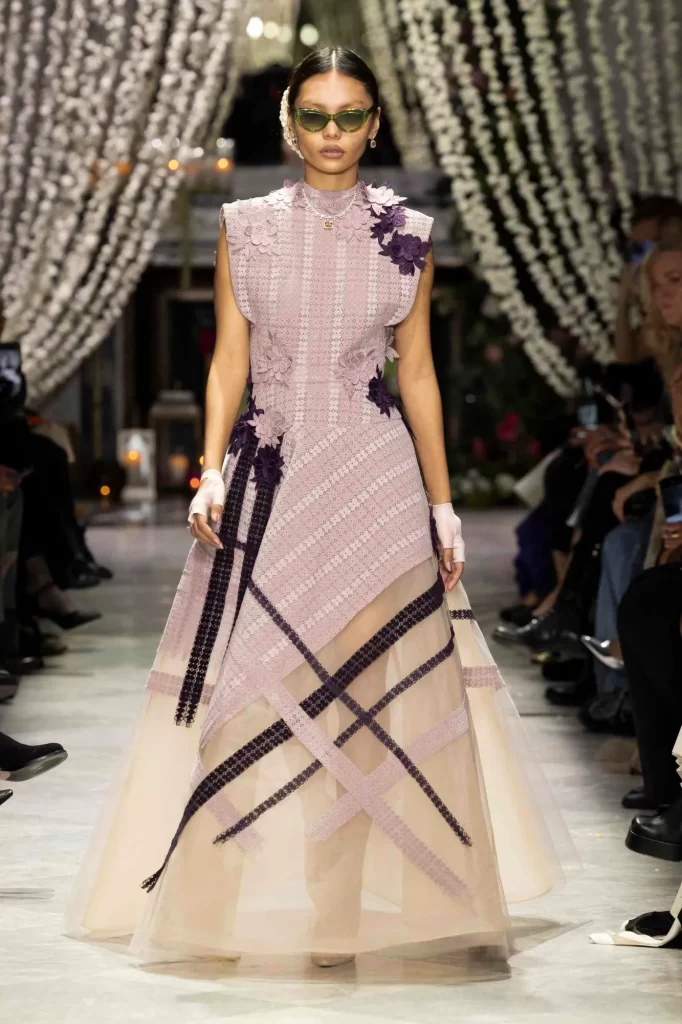 Bibhu Mohapatra’s collection crowned Patti Smith as its muse—not in style, but in spirit. Instead of reinterpreting her androgynous wardrobe, Mohapatra channelled her defiant creativity into striped jacquards, beaded tulles, and organza gowns. Mini shift dresses played against sweeping silhouettes, capturing the tension between structure and abandon.