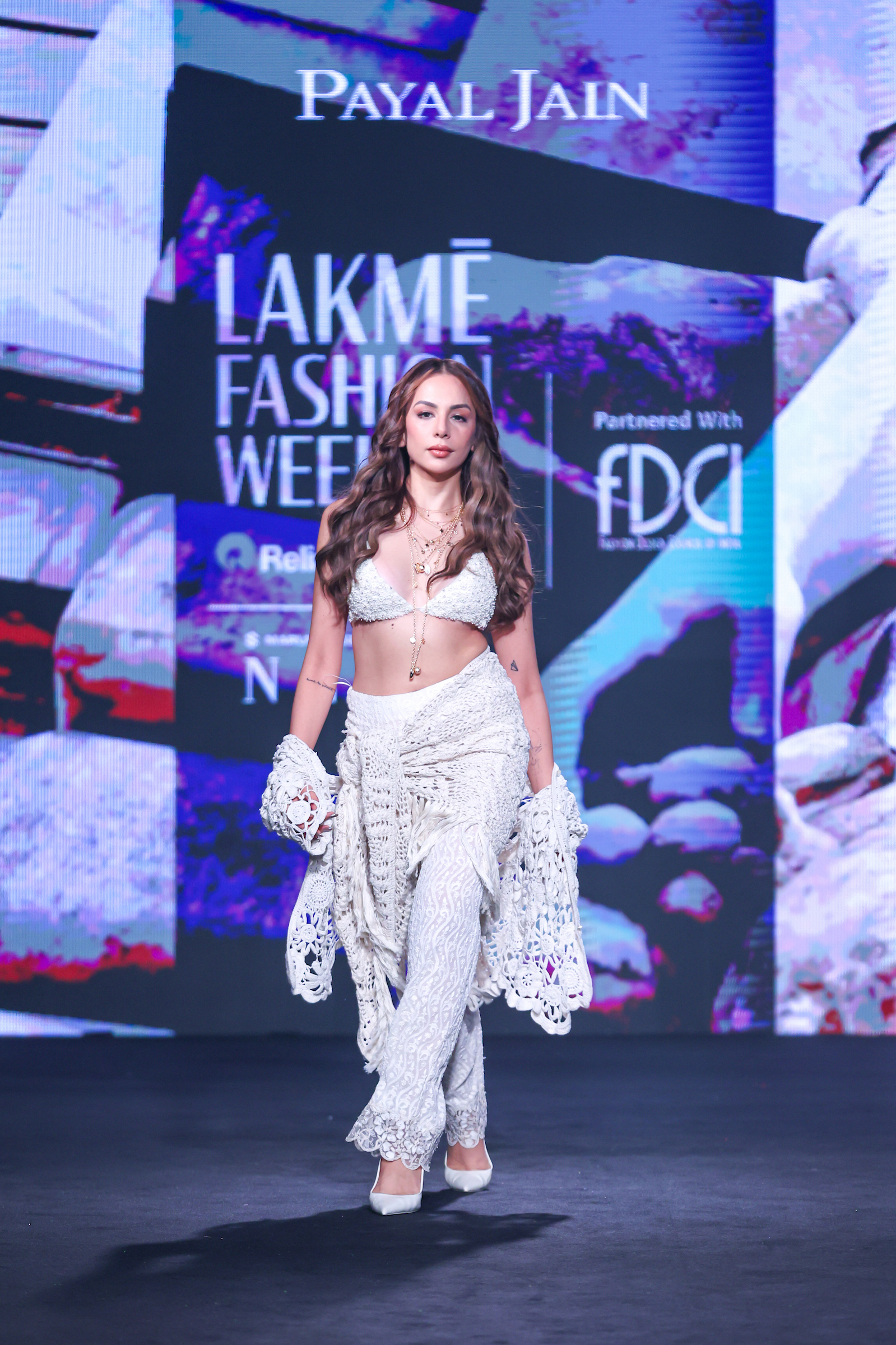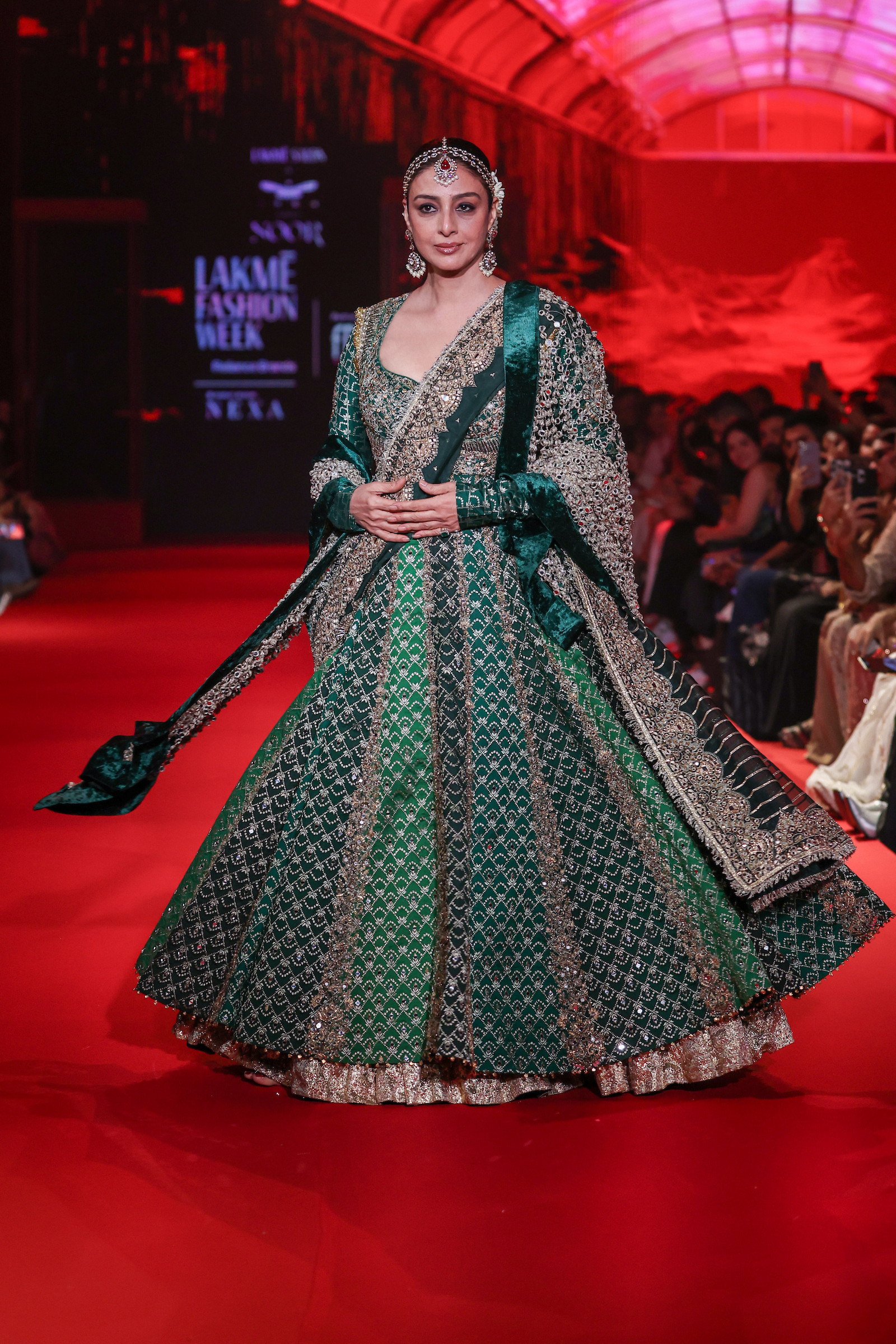 Lakmē Salon, in collaboration with designer duo Mohit Rai and Ridhi Bansal of ITRH gave a glittering ode to bridal glamour with Noor – A Signature Bridal Collection. The showcase was a love letter to Indian craftsmanship with ITRH’s signature maximalism; think Sheesh Pushida Jaal mirror work, gota patti, dabka, zardozi, and patta patti, all woven onto antique Benarasi brocade and tissue, with the richness of Navratan polki adding that final flourish. The cherry on the top was Tabu closing the show with pure cinematic magic.