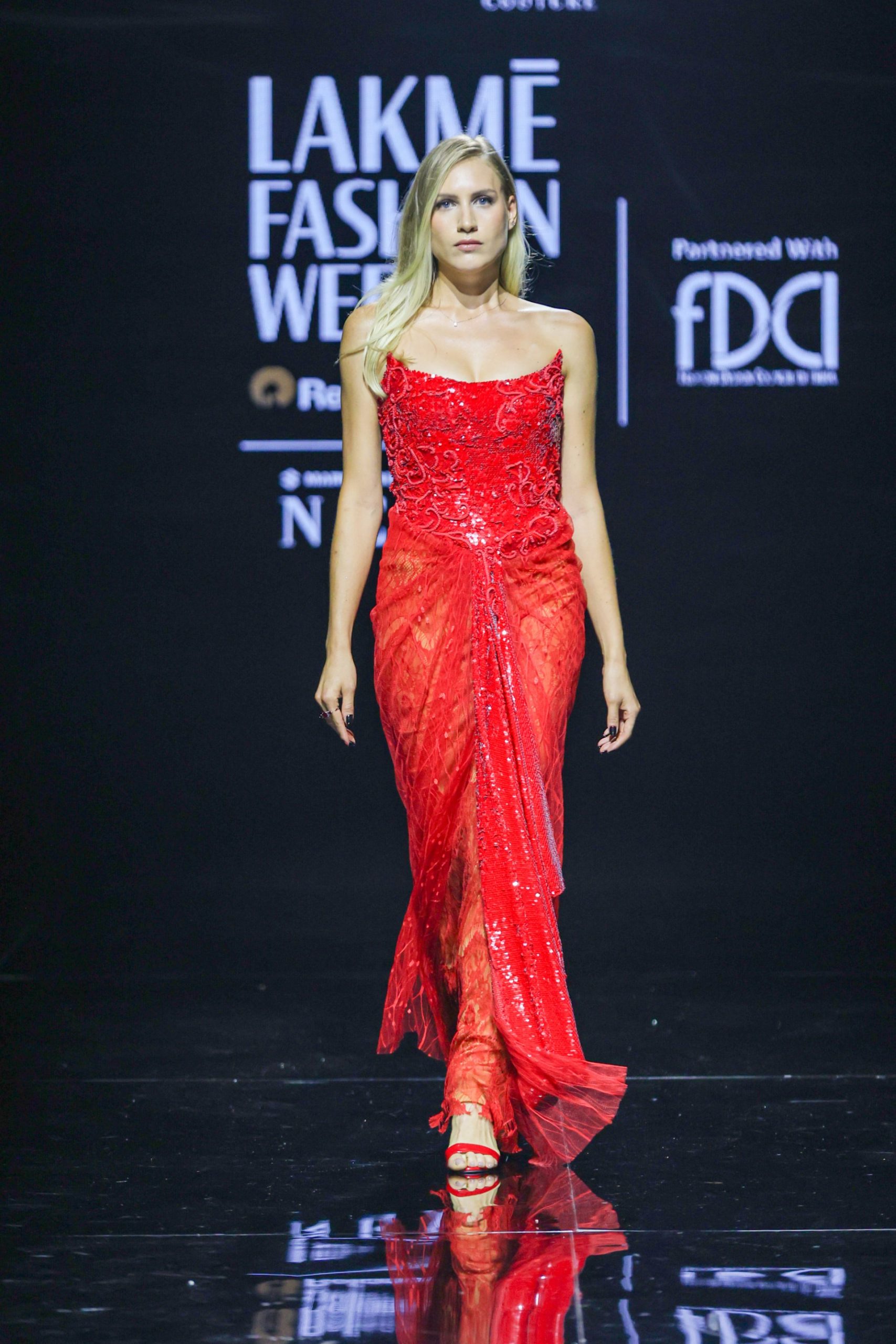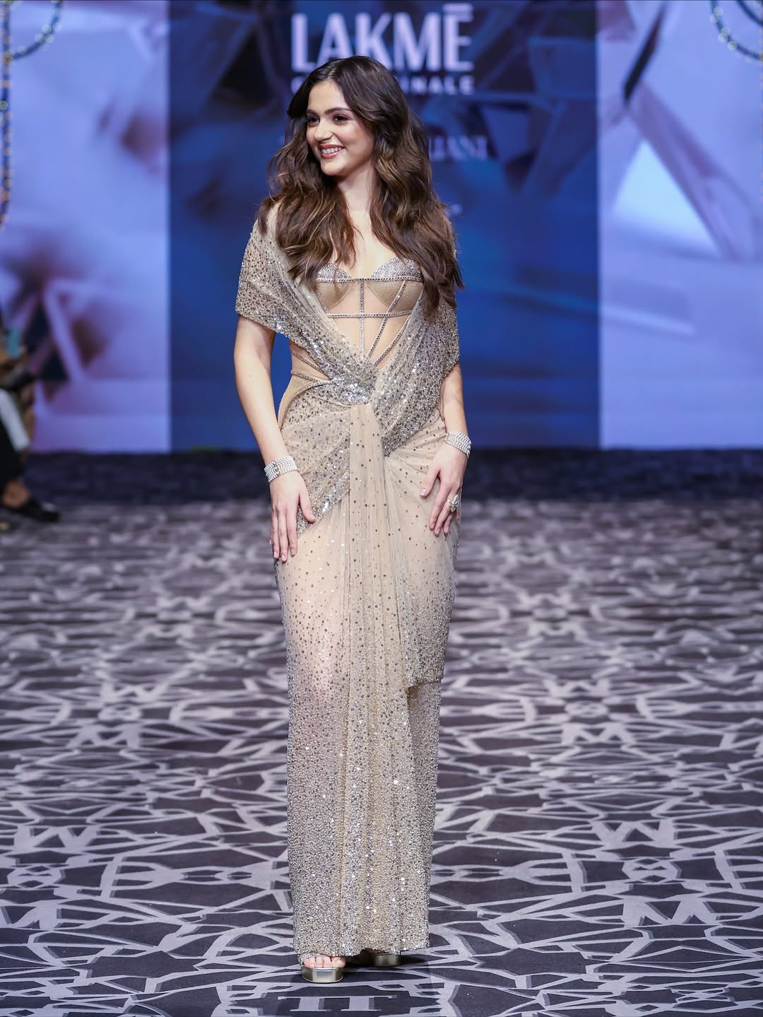 Day 4 at LFW closed with pure drama as Shantnu & Nikhil unveiled Velora, their first-ever all-womenswear couture showcase in India. Known for rewriting the codes of Indian menswear, the designer duo turned their gaze toward the modern woman — bold, cinematic, and unafraid to take up space. We saw corseted bodices with razor-sharp plunge lines, gowns that glided like liquid architecture, and some dramatic drapes. The ensembles featured pearl-studded embroideries, crystal cascades, and metallic flashes that shimmered like starlight.