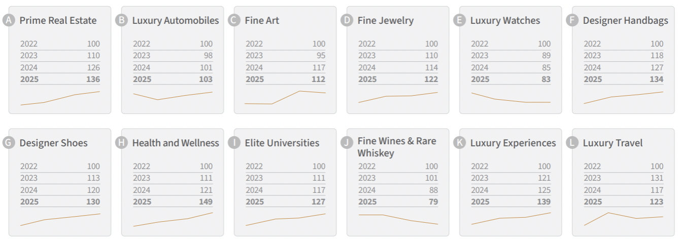 As the Kotak Private Luxury Index 2025, an inaugural report that throws light on the luxury sector in India notes, “Overall, the KPLI had risen to 122 by 2025, reflecting a 6.7% annual increase over the last three years,” with category-wise CAGR data highlighting how fine art, luxury real estate and designer handbags outpaced broader market benchmarks.
