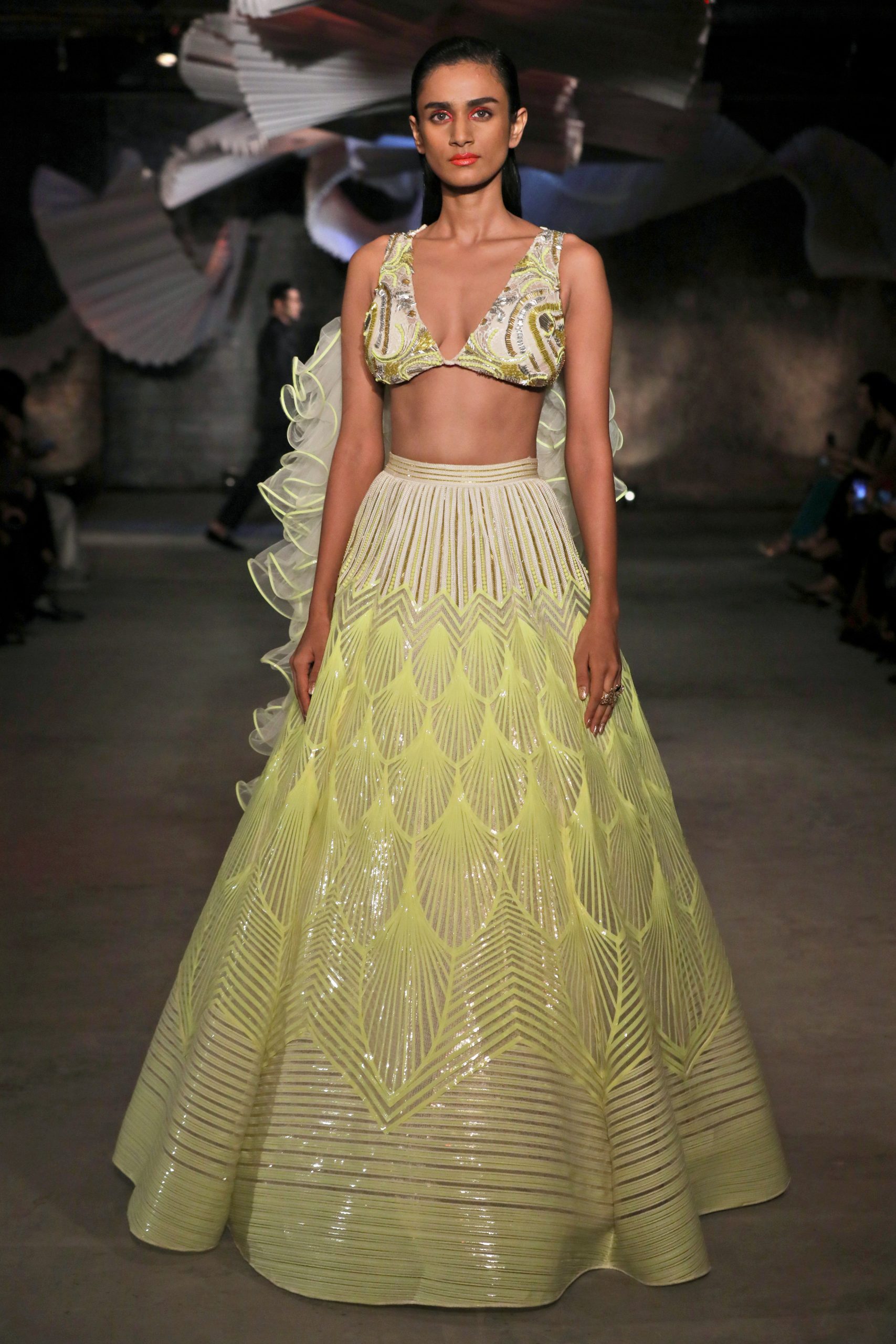 Payal Singhal, who celebrates her 20th year in the fashion industry this year, drops the idea of traditional dupattas and recommends embroidered jackets over lehenga-choli sets. “Bombers and jackets with lehengas are trending this season. And the showstopper outfit we put together for Shibani Dandekar (at the Lakmé Fashion Week W/F 2019) is perfect for a modern bride.”