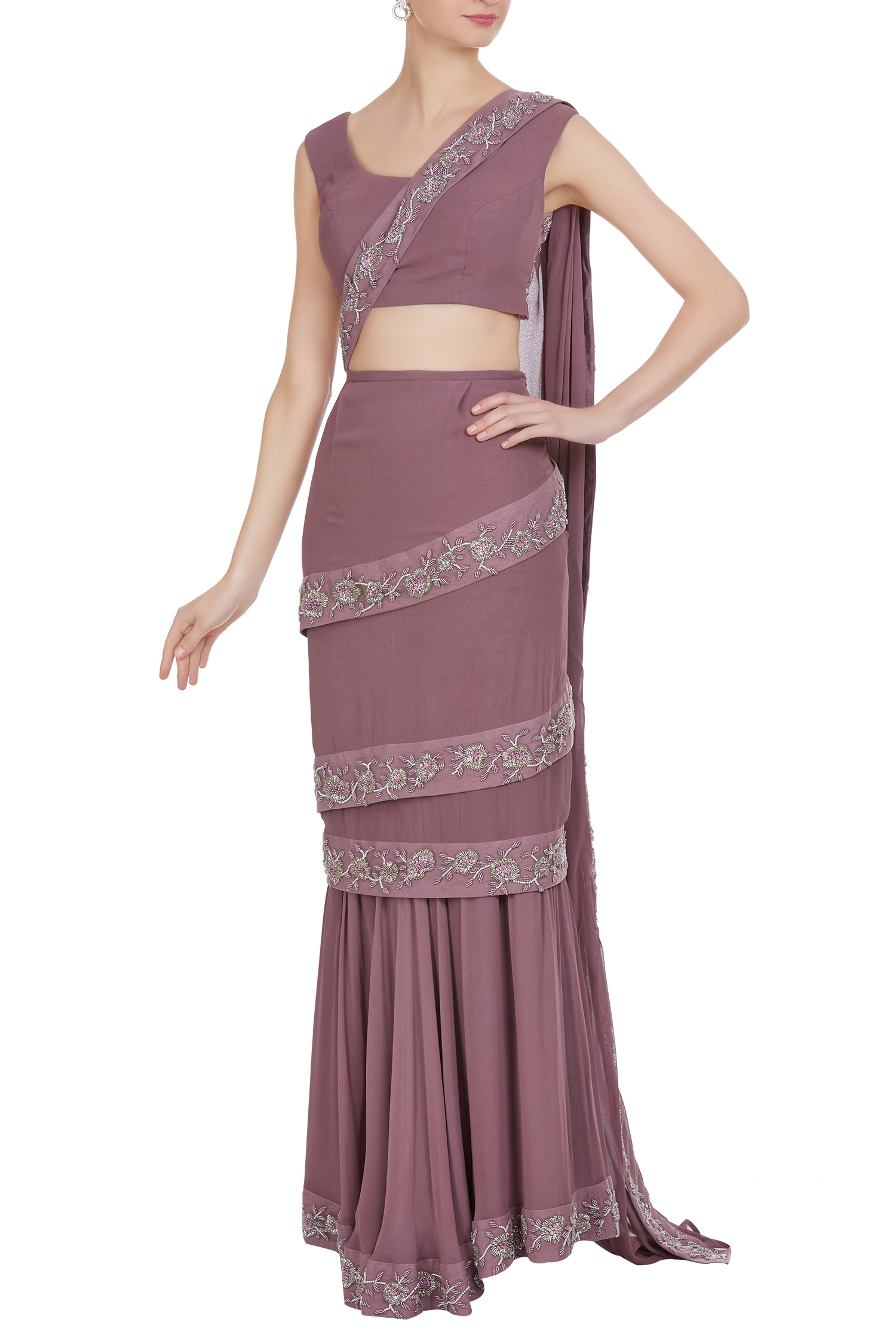 for vintage tones like ochre, European green and salmon pink and choose floral patterns with sequined embroidery for sensuous cholis, shararas. Sheer organza sarees and peplum tops are also great options.