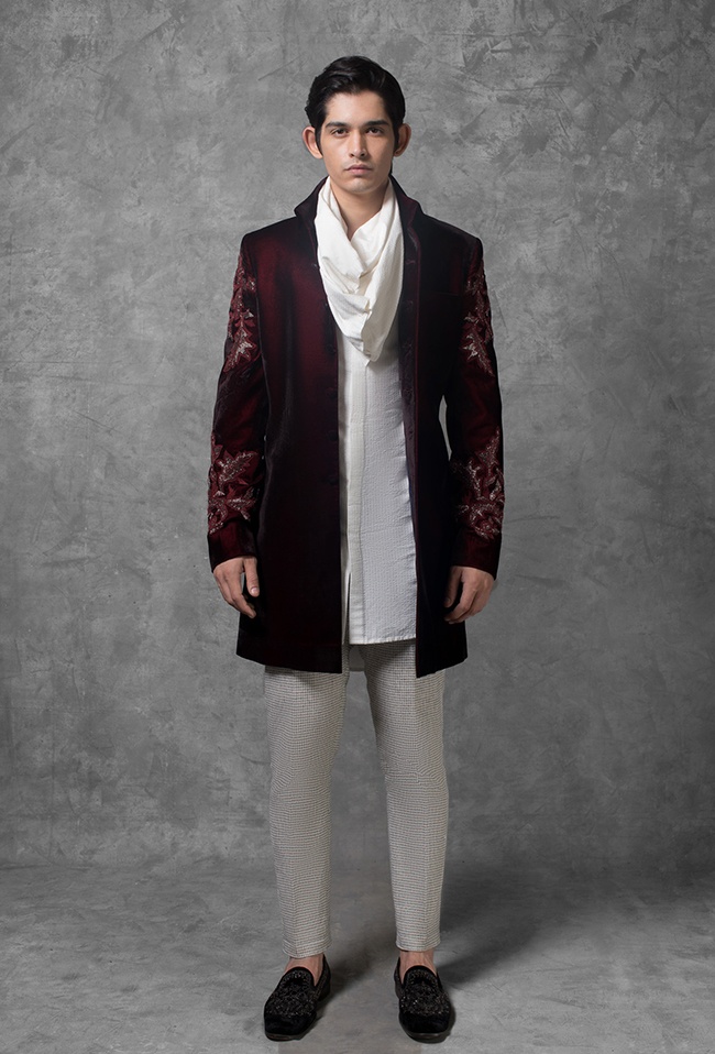 Pastel toned sherwani jackets and long structured kurtas are in trend for grooms, says Ahmedabad-based designer couple Shyamal and Bhumika Shodhan. They suggest that brides opt