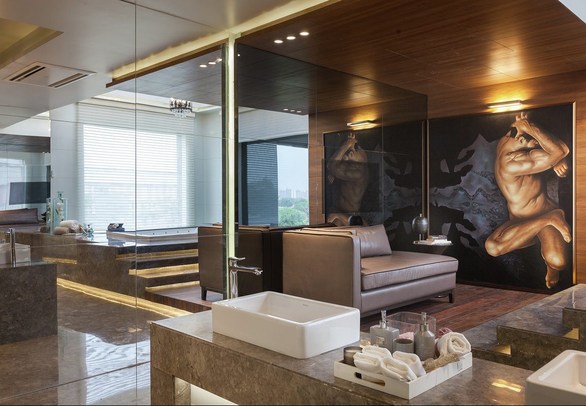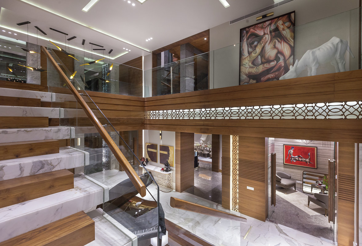 The entire space translates into modern luxury, where the use of matte wood and glossy marble provide a solid contrast. Every corner of the house looks spacious and uncluttered.